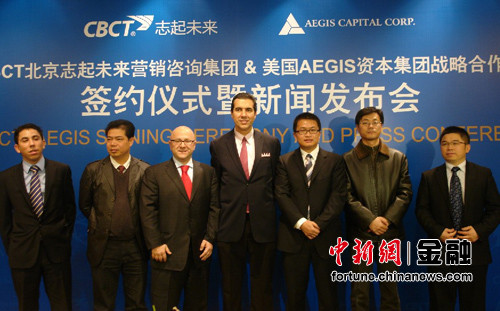 华尔街Aegis 投资集团宣布进入中国市场,与中国本土顶尖营销咨询机构——CBCT北京志起未来营销咨询集团联合在北京北辰洲际酒店召开新闻发布会,正式签约结成中国战略合作伙伴关系。
