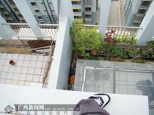 7月13日上午,记者再次来到该小区事发居民楼四栋一单元,在一名保安的指引下,乘坐电梯到了楼顶天台。从天台上可以看到,顶层两户居民家的露台除了架设的挡雨玻璃层外,没有任何防护设施,从天台上就可以轻易翻入露台。带记者查看现场的保安说,小偷就是从乘电梯上天台,然后跳入露台潜入居民房内的。