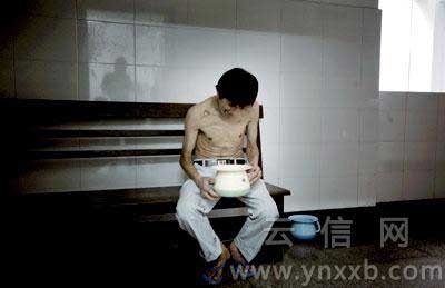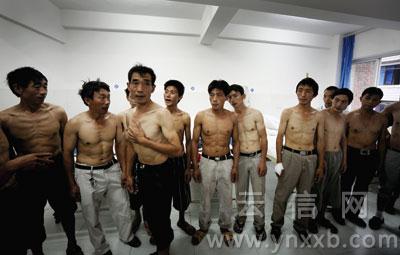 瘦骨嶙峋,根根肋骨外凸。15个赤裸着上身的男子,在病房里排队照相留念,他们是盐津县盐井镇的一群矽肺病患者。面对死亡,他们脸上露出几分苦涩的笑容,最大的愿望就是希望自己能够活下去。