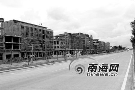 记者在椰海大道迈仍村路段看到,道路两旁矗立着一排排已停工的多层楼房。琼山区城管执法大队副大队长王斌说,在迈仍村里还有不少违法建筑。
