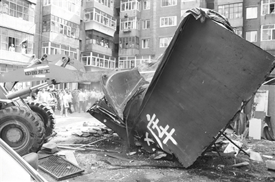 23日14时许,记者随同80余名执法人员来到现场,经执法人员连日调查发现,辽阳街57号院内共有私建车库11处,房主不能提供任何审批手续,并拒不自行拆除。当执法人员调动铲车准备进行拆除时,一家车库的房主将吉普车停靠在车库前,不让铲车靠近,并站在车库门前对执法人员进行辱骂。其中一名男子更是拿出把30多厘米长的大长砍刀,扬言靠近伤到不负责,并在执法人员面前挥舞砍刀,一名执法人员受伤。他一边挥舞砍刀一边对执法人员进行辱骂,站在旁边的3名男女不时地推搡执法人员,阻止拆除工作。面对恐吓和威胁,执法人员采取措施将私建房主隔离现场,并调来拖车将挡在车库前的吉普车拖离现场后立即开展拆除。随着铲车的轰鸣声,11处侵占居民生活空间的私建车库被强拆。