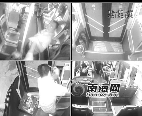 视频记录下5分钟打人一幕嚣张男子的一举一动被公交车上的视频记录下来。8日下午,记者来到文昌海汽公交客运有限公司。推开房门,几名工作人员正在电脑前观看这段视频。