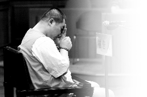 当公诉人问到孩子被扎有没有哭闹时,李磊说:“没有。”他仰头望向天花板,第一次流泪了。公诉人举证出示杀人现场照片,他眼里含泪坚决说:“不看。”