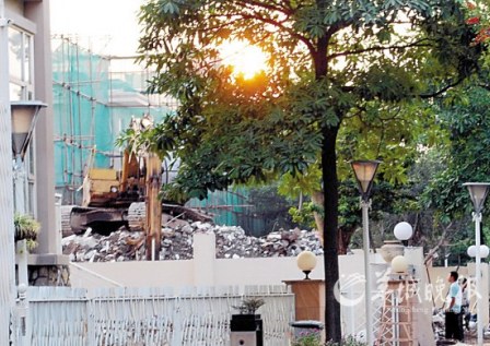 二沙岛宏城花园“最牛别墅”宏达径26号终于被拆平(见右图)!昨日,记者在宏城花园看到,除了宏达径26号之外,宏达径1号也被整栋拆平。另外,宏达径3号、12号和宏兴径17号等3栋被强拆的违建别墅也基本拆完违建部分。据悉,城管部门昨日已召集业主开会,要求其他未完成清拆的违建别墅必须在本月15日之前完成清拆,城管部门将继续保留执法人员在小区内监督和巡查,直至所有清拆工作完成。