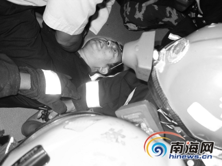9月28日下午3时30分,记者来到海口滨海大道珠江广场帝豪大厦,一股刺鼻的汽油味弥漫了整个楼道。七八名男子和保安站在该大厦英德建设投资有限公司大门口,见到有记者拍照,立刻上前制止。记者站在门外听到,一名男子在里面大声叫喊着“今天不给我钱,我就死在这里”。为避免男子情绪过于激动,金贸派出所的民警随后也退到了公司门口。两分钟后,金融消防中队的消防官兵赶到了现场,立刻打开了消防水带准备营救。