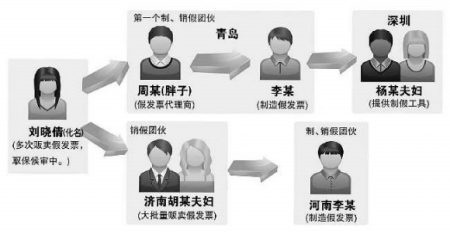 湖南的刘晓倩夫妇来到青岛后,—直以贩卖假发票为生。2009年,两人在贩卖假发票时,被青岛警方抓获,由于两人有—个4岁大的小女儿无人照顾,按照相关规定,刘晓倩因要照顾未成年子女,得以取保候审。刘晓倩还是无法舍弃她与丈夫的假发票“事业”。在丈夫被抓后不久,她就联系到—名外号叫“胖子”的男子周某。
