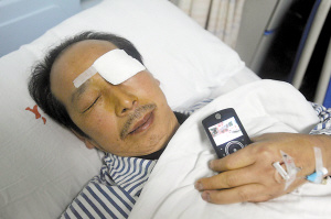 昨日,在第三军医大学大坪医院眼科病房内,等待手术的周之贵,用右眼仅存的微弱视力,努力看着手机上儿子周津宇的照片。“儿子乖得很,从不和人打架,生人面前话都不敢多说,这么老实的娃儿却被人杀了。”周之贵的眼泪一下涌了出来,六妹周之英赶紧上前劝他,“不能再哭了,眼睛要哭坏。”