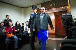 犯罪嫌疑人昝红伟进入法庭时,两旁的亲朋一直盯着他。本报记者 浦峰 摄