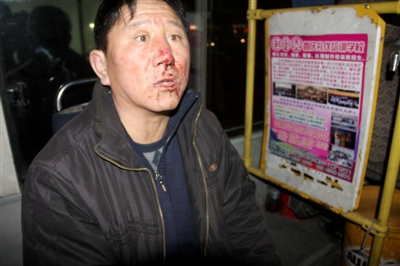 3日15时许,在哈市香坊区乐园街公交站台附近,一名私家车主因102路公交车别了他的车,私家车主趁公交车在站台停车上下客时登上公交车对驾驶员大打出手,将公交车驾驶员打得满脸鲜血。