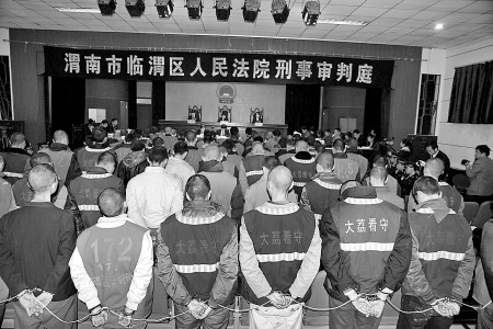 二三十个被告人的家属经过登记后坐在旁听区。当天,临渭区法院还邀请了渭南市中院,区委政法委、人大、政协领导和部分人大代表、政协委员、群团组织进行了旁听。