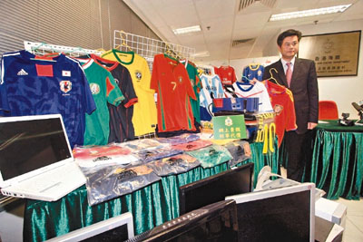 中新网7月9日电 据香港文汇报报道,南非世界杯掀起足球热潮,售价仅及正版球衣1/3价钱的冒牌球衣也于各大甩卖网站热卖。香港海关近日成功破获18宗网上售卖侵权物品案,搜获逾3000件冒牌货及17台计算机,包括800件质量差劣的冒牌球衣,总值逾39万元。被捕的22名男女中,包括3名大专学生、补习老师,甚至会计师等专业人士,涉及经营该等不法副业,各人暂准保释候查。