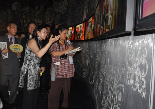 上海正逢高温酷暑,上午11时,诗琳通公主顶着烈日抵达澳门馆前,受到澳门上海世博会筹备办公室主任杨宝仪的热情欢迎,澳门小朋友向公主献花。端庄贤淑、平易近人的诗琳通公主,头戴太阳帽,穿着朴素。她手捧笔记本,胸前挂着照相机,首先在第一部分“郑观应展区”听取讲解,杨宝仪交替用英语和汉语为诗琳通公主介绍。