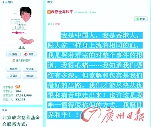 成龙25日的言论在微博上发表后,随即在网络上疯传,在各大网络的讨论区都推出了这次成龙言论的专题,网友们纷纷对成龙表示很不满。