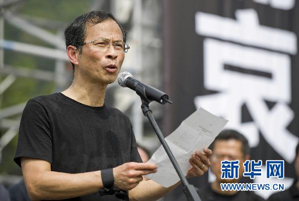 8月29日,香港特区立法会主席曾钰成在游行集会上讲话。新华社记者吕小炜摄