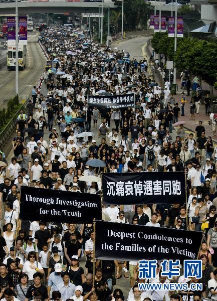 香港立法会各政团发起游行要求彻查人质事件真相(4)