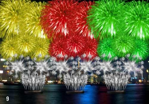 国庆烟花汇演共有九幕。第一幕“万众同心”,天空中将绽放出大“红太阳”、“红色五角星”和“紫荆花”形图案,庆祝国庆。在第五幕,银闪、绿闪、红闪、金闪、橙闪等颜色的烟花,和谐悦目,展示该幕主题“大同世界”;最后一幕“国运昌隆”,绚烂而热闹,加上长达六十秒密集发放缤纷色彩的烟花,把整个烟花汇演推向高潮。