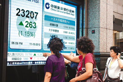 中新网10月12日电 据香港文汇报报道,港股11日六连升,收升263点至23,207点,为08年6月中即28个月以来的新高,成交亦近千亿元。多只蓝筹皆创一年新高,其中港交所直逼170元,创逾两年半高位。