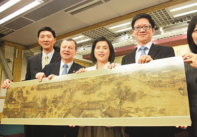 电子动态版《清明上河图》全长超过120米,高6.5米,参照北宋画家张择端的《清明上河图》原作,以先进的三维动画科技,将《清明上河图》重新演绎,以生动活泼的方式展示昔日宋朝盛世的都市风貌、民生百态,在上海世博中国馆展出期间,备受中外游客击节赞赏。