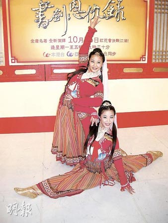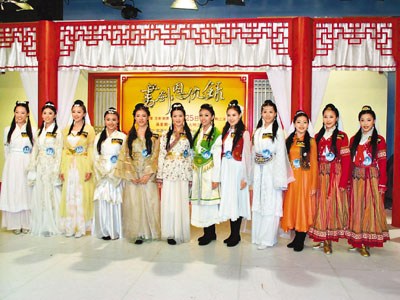 中新网10月22日电 据香港文汇报报道,12位港澳赛区候选亚姐21日以古装打扮宣传外购剧《书剑恩仇录》,并进行才艺比拼,包括跳舞、舞剑、画画、蹴鞠和献唱剧集主题曲,不过7号李秀君、9号陈明月和11号闵兰献唱剧集主题曲时又走音又忘词;3号贺元欣、5号万嘉丽和6号李莹莹舞剑时更加搞笑,最后还得到“最具娱乐性奖”。