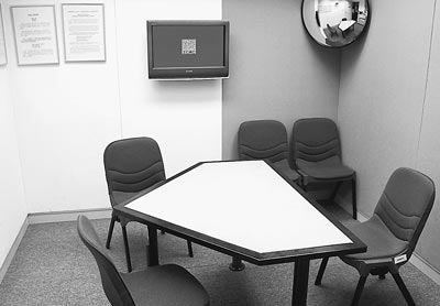 廉署“录影会面室”空间的确不大,除了摆放在中间的一张近似三角形桌子,就是墙角的录影设备。以同疑犯会面为例,室内的三台摄像机同时启动,最终的三盒录影带,一盒在疑犯面前密封,需要时用作“呈堂证供”,一盒交给疑犯本人,一盒留工作人员做调查用。室内最上方设有一个类似街道拐角处的“广角镜”,确保可以拍摄到每一个角落,杜绝有人在录像过程中“做手脚”。
