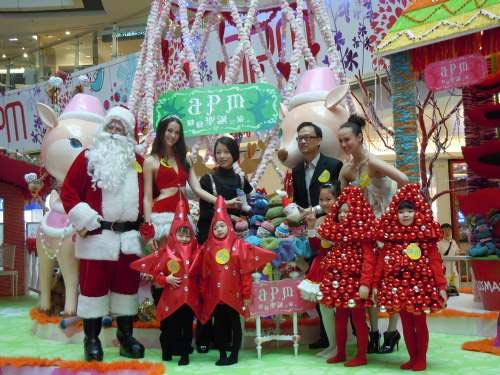 距离圣诞还有一个月,但节日气氛已充满大街小巷,不少商场用各式各样的圣诞饰物装点一新。观塘apm商场邀请世界各地的艺术创作者,用一万呎(英尺)长毛冷编织成潮鹿乐园,包括四十呎高的圣诞树、圣诞鹿等。还有超过二百二十场表演节目,包括杂技、管乐等。