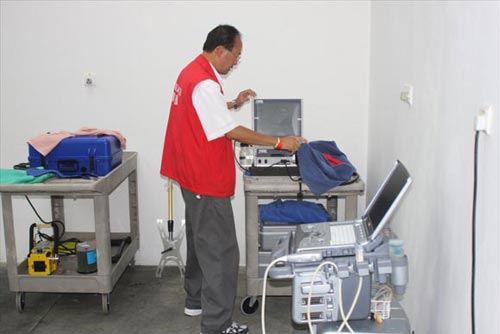 在马匹手术室,一台价格昂贵达33万港币的手术台置放在室内中央,这是采购于欧洲芬兰的专门医疗厂家。手术台可以平放、倾斜和升降,手术台四周还有可以合拢的挡板,以便固定躯体硕大的马匹。谈到赛马医疗,陈先生介绍,22日上午的场地障碍赛中,卡塔尔、马来西亚和中国台北队各有一名队员在比赛中落马。经现场检查,卡塔尔和台北队骑手和马匹轻伤无妨,但是马来西亚运动员的坐骑右前腿伤势严重,初步治疗后还要做X光的进一步检查和治疗。