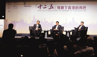 智经研究中心昨举行第二届“智经领袖论坛”,主题为“‘十二五’规划下香港的角色”。唐英年在论坛的午餐会上发表了主题演讲,他表示,比较“十一五”,香港对“十二五”的参与程度,更加积极、主动、全面。