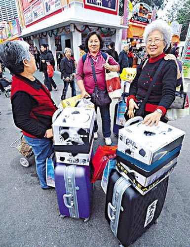 中新网12月12日电 据香港星岛日报报道,内地通胀率持续高企,吸引大批内地旅客赴港“扫货”,一出手便是“成千上万”,十一日更有内地客“豪掷”三十二万元(港元,下同)买鲍参翅肚;不少内地旅客表示,专程到工展会是因为香港购物“货真价实”且“食得放心”。不少参展商均指,今年入场的内地旅客明显较往年多,大会预计内地游客占全部生意额约三成,其中自由行生意额预料比去年升一成。