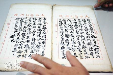 展览展出两本清朝宣统三年广东布政使陈夔麟给皇帝的奏折,其中有清廷圣上朱批的“陆军部知道”和“知道了”批示。李国强说,这两本奏折是研究晚清历史不可多得的材料。此外,展览展出有九十年历史的“大总统奖牌”,据介绍,这块奖牌是孙中山颁发予协助平定叛乱的陈昌光,后来他把这块奖牌赠予香港工会保存,一直摆放于海港业总工会内,今次是特别借予大会供展出。