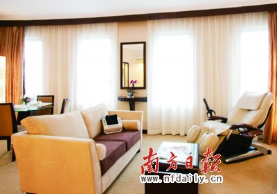 客房设施:酒店拥有一系列匠心独具设计的客房,部分房间可提供Wi-Fi宽带上网服务、国际长途电话服务、卫星电视频道、客房小酒吧及冰箱、房间迷你保险箱、床头收音机闹钟、暖风机、熨斗及熨衣板、吹风机。