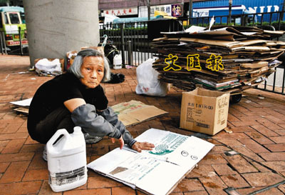 本港有数以万计的长者以售卖回收废纸和金属赚取微薄生活费;随着废料出口价暴泻,他们的生活更堪虞。(图片来源:文汇报)