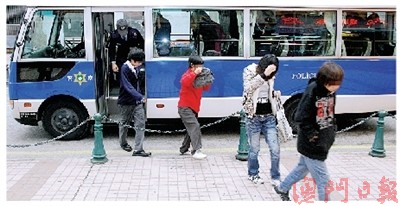 澳门治安警逮获8名涉案未成年人,其中1人疑为主谋,5人为学生、3人无业,各人年龄12至15岁,他们分别于11日下午3时和4时在父母陪同下,移送检察院侦办。