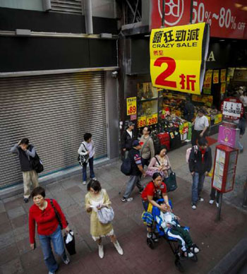 英国媒体6日刊登了一篇曾荫权的访问报道,内容谈到特区政府如何应对国际金融海啸的冲击。曾荫权说,他从未见过如此急速的经济衰退,预计经济收缩可能较特区政府预期的2%至3%为高。“本年前两个月的出口下跌接近四分之一,这大概是自二次大战以来最厉害的跌幅。”他续道,自90年代中国成为“世界工厂”开始,转口贸易已成为香港其中一项最重要的“经济引擎”。