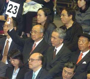 13日出席拍卖场的发展商多为长期捧场客,包括长实执行董事吴佳庆、恒地执行董事李家诚、会德丰地产执行董事黄光耀、华懋执行董事梁荣江、嘉华国际主席吕志和及董事总经理吕耀华、信置主席黄志祥、新世界发展执行董事梁志坚、恒隆董事总经理袁伟良等。
