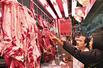 图:香港活猪价格持续上升,肉档档主无奈地表示,贵货难销,市民难捱。(图片来源:大公报)