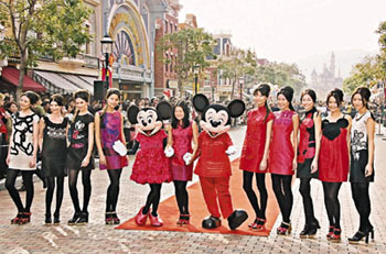 迪斯尼的庆鼠年活动上,模特儿穿上各款米奇老鼠新年服装亮相(文汇报图)