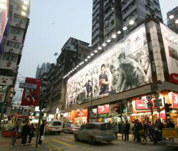 “资料图:2007年12月21日” 位于香港旺角、聚集有19间体育用品商店、俗称波鞋街的地方,是众多市民和游人采购体育用品的地方,香港市政建设局二零零七年十二月二十一日表示 ,将动用31亿元对这条特色街道进行重建。为保存区内特色,重建后会在区内成立首个体育名人馆,商铺之上也会加入空中花园及住宅项目,减少密集性。市建局预计,重建会在2013年完成。提升特色街区的品质,挖掘发展新潜力,是香港有关单位近来不断出手的举措。图为人流不息的波鞋街。 中新社发 王丽南 摄