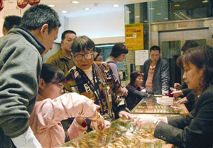 图:金价回落,吸引不少居民入货。(图片来源:澳门日报)