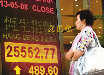港股没有被地震震散,13日不跌反升近500点。(图片来源:文汇报)