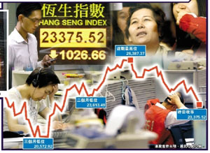 中新网6月11日电 据澳门日报报道,受内地突然大幅收紧银根及国际油价飙升等因素影响,市场料端午补假后港股会下挫,早有心理准备。港股10日急泻1026点,是三月中旬以来最大单日点数跌幅。澳门证券业者表示,近期股市仍相当波动,6月或下试低位。