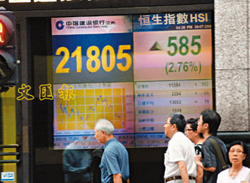 香港恒生指数9日上升585点。(图片来源:文汇报)