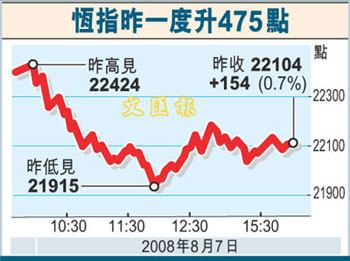 辉立资产管理策略师陈煜强表示,由于全球经济放缓,股市仍未见可突破的机会,加上预期奥运期间,内地不会有新措施出台,估计恒指短期内只会在22000点左右徘徊。