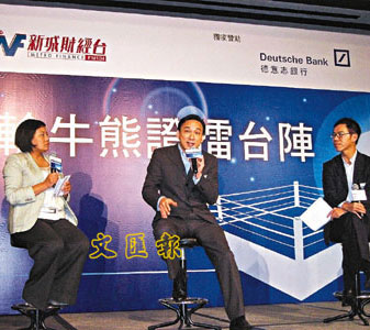 左起:资深股评人胡孟青、德银环球市场证券部董事孙明哲及辉立证券及研究部董事黄玮杰。(图片来源:文汇报)