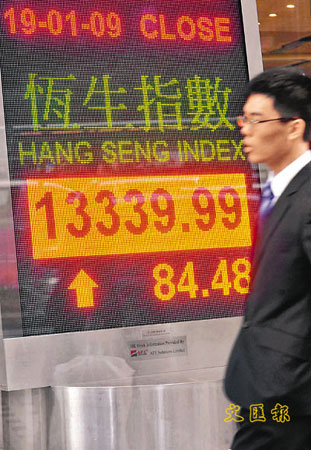 美国假期20日晨休市,港股好淡争持,美国总统奥巴马即将宣誓就任原属利好消息,但汇控继续疲弱,19日再跌3%,令大市大部分时间疲弱,全日只微升84点,报13339点,成交379.6亿元。港股波幅不算大,但走势反复,恒指先高开后下跌,跌至下午2时半后反弹,最低见过13097点,其后大市由跌转升,形成“N”形走势。