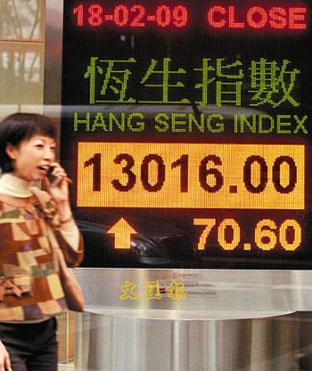 中新网2月19日电 据香港《文汇报》报道,美股周二急跌近300点,日韩股市也下跌情况下,令港股18日低开162点,加上午后A股跌近5%,市场普遍认为18日港股会大泻收场,但恒指下午在中移动、和黄等重磅股的补仓盘带动下,来个“V”形反弹,从底部急弹300点,令港股最终倒升,并重上13000点大关。