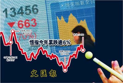 中新网3月31日电 香港《文汇报》今日在要闻版报道,美国政府以强硬态度对待通用汽车和佳士拿的重组,两大企业可能破产,打击市场气氛,亚太区主要股市全线下挫,令港股在期指结算日一开市已跌穿万四大关,走势急转直下,内银及资源股齐泻,拖累恒指大跌663点,跌幅4.7%为三周来最大,收报13456点,大市成交516亿元。