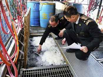 海关人员在查验供港澳的鲜活水产品,加快验放速度 大公报图