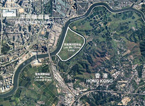 显示落马洲河套地区位置的航空照片。(图片来源:香港特区政府网站)