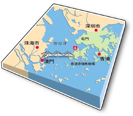 据即将上呈中央审批的大桥工程可行性研究报告显示,拟建大桥跨越珠江口伶仃洋海域,香港登陆点位于石散石湾,澳门登陆点在明珠点,珠海登陆点为拱北。大桥主体跨海总长约三十五公里,其中海底隧道长约六点七五公里,桥梁长约二十九公里,实现桥隧转换的海中人工岛两座(长一公里、宽一百米);“三地三检”口岸分别设置于各自行政区域内近岸的三个人工岛上(填海面积约九十一点一、一百零九点五、五十二点九公顷);珠海侧连接线全长十三点八九公里。海中桥隧主体工程和珠海连接线按六车道高速公路标准、澳门口岸与大桥连接桥按四车道城市主干道建设,港、澳口岸与大桥的连接线按交通通行能力匹配原则确定主要技术标准。