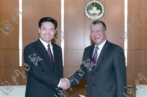 珠海市代表团于14日上午抵达澳门,展开为期2天的访问。甘霖一行抵澳后,前往特区政府总部拜会澳门特首何厚铧,双方并举行会议。代表团并出席行政长官所设的午宴,以及访问澳门交通事务局、考察珠澳跨境工业区等。